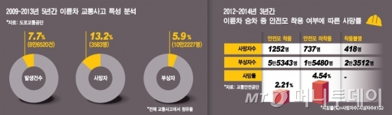 사고로 인한 사망자 수. 경찰청에 따르면 올 들어 6월 말까지 국내 오토바이 사고 사망자는 253명으로. 이륜차와 자동차의 사고율 및 사망율 비교.